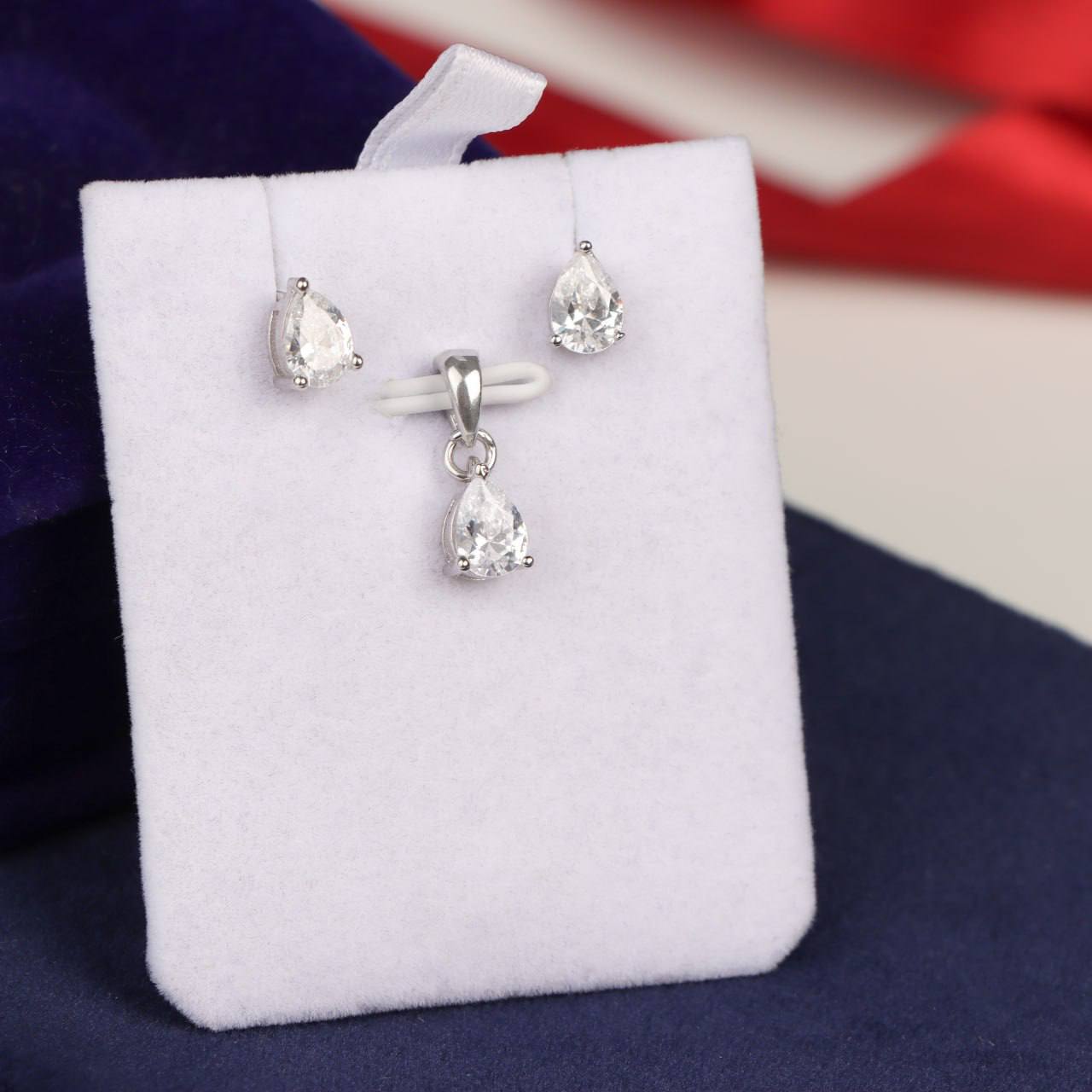 ۰۳۴۲. نیم ست نقره مدل قطره (پلاک بدون زنجیر+ گوشواره)ناموجود