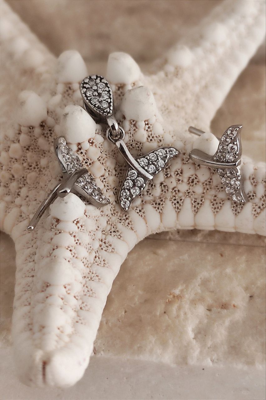 ۰۰۷۱. نیم ست نقره مدل دم نهنگ (پلاک+گوشواره میخی+ پشت گوشواره نقره)