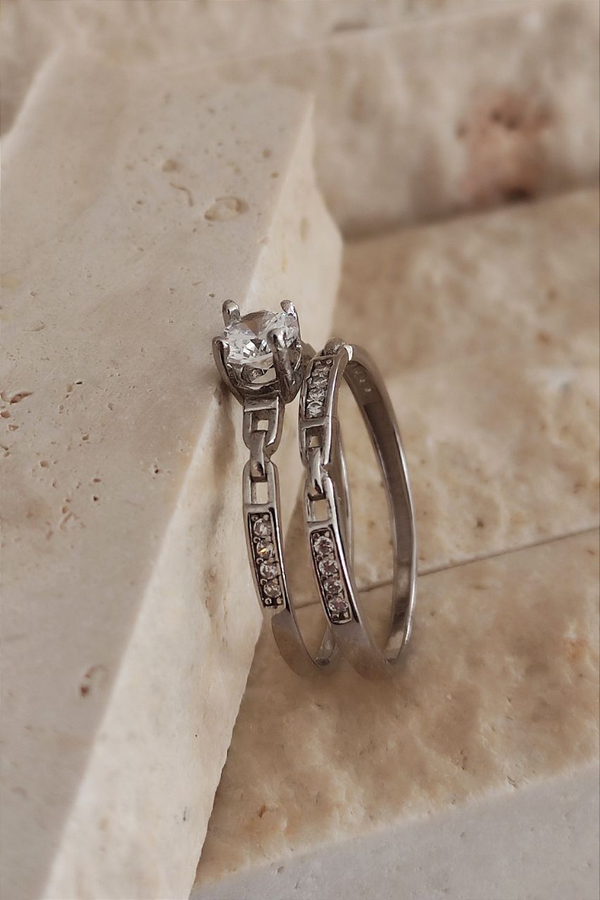 ۰۰۹۳. حلقه و پشت حلقه نقره مدل نگین و زنجیر (ست باهم)۱٬۴۰۰٬۰۰۰ تومان