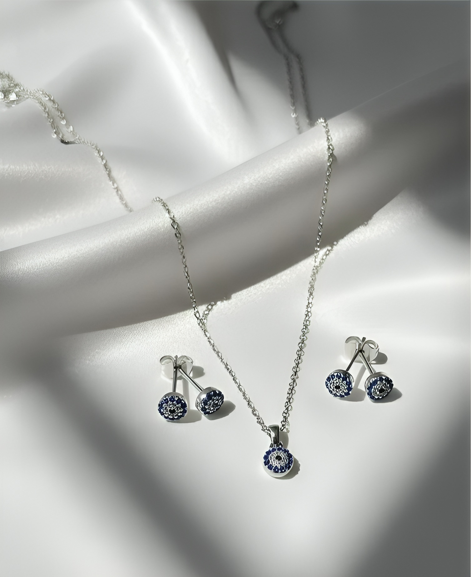 ۰۳۲۸. نیم ست نقره مدل چشم نظر مینی (بدون زنجیر)