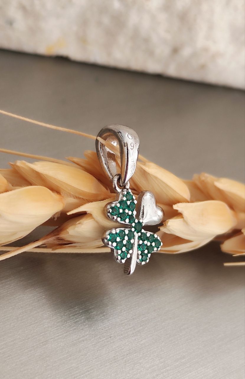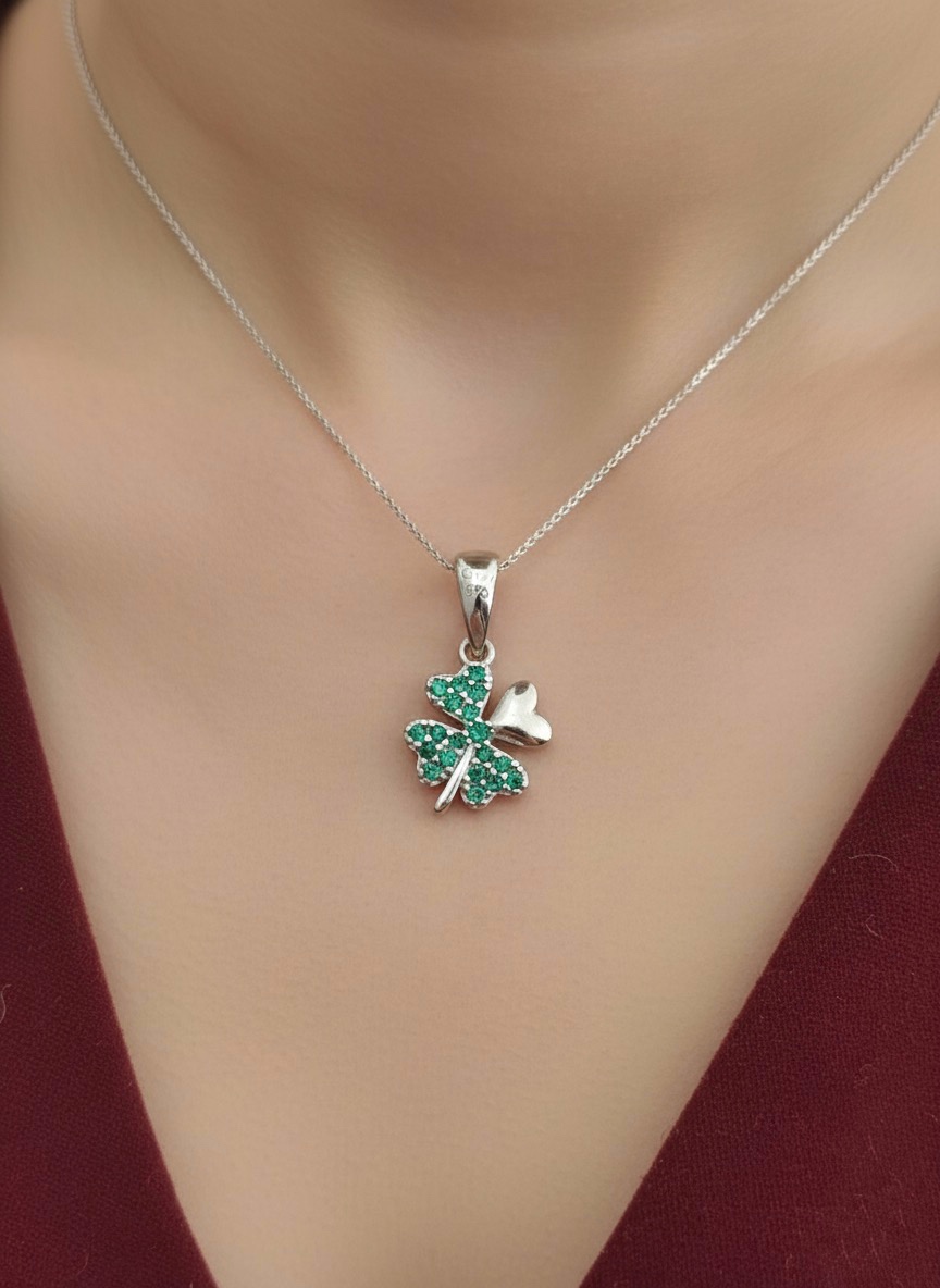 ۰۳۶۰. پلاک نقره مدل شبدر سبز (بدون زنجیر)