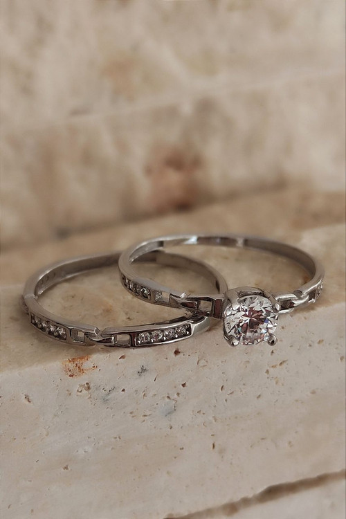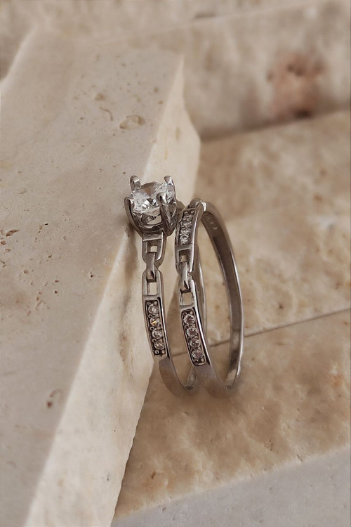 ۰۰۹۳. حلقه و پشت حلقه نقره مدل نگین و زنجیر (ست باهم)