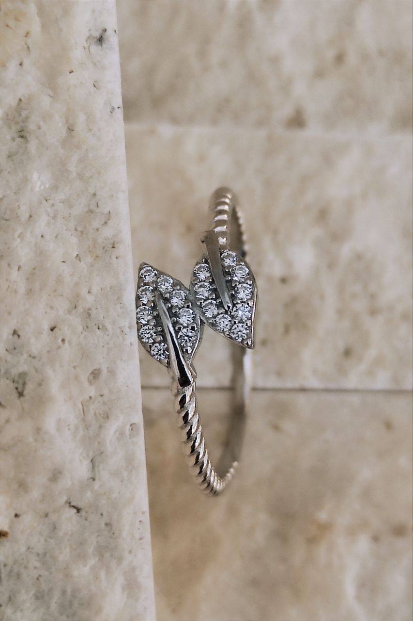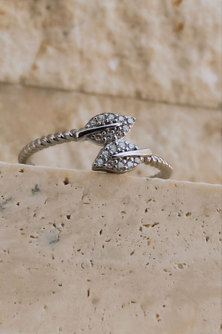 ۰۳۸۰. انگشتر نقره مدل برگ های دوقلو