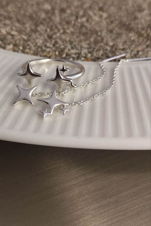 0050. نیم ست نقره مدل اسپارکل (گوشواره / انگشتر)