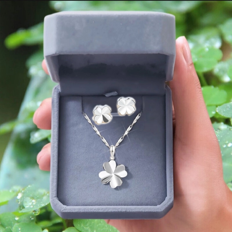 0235. نیم ست نقره مدل شبدر چهاربرگ