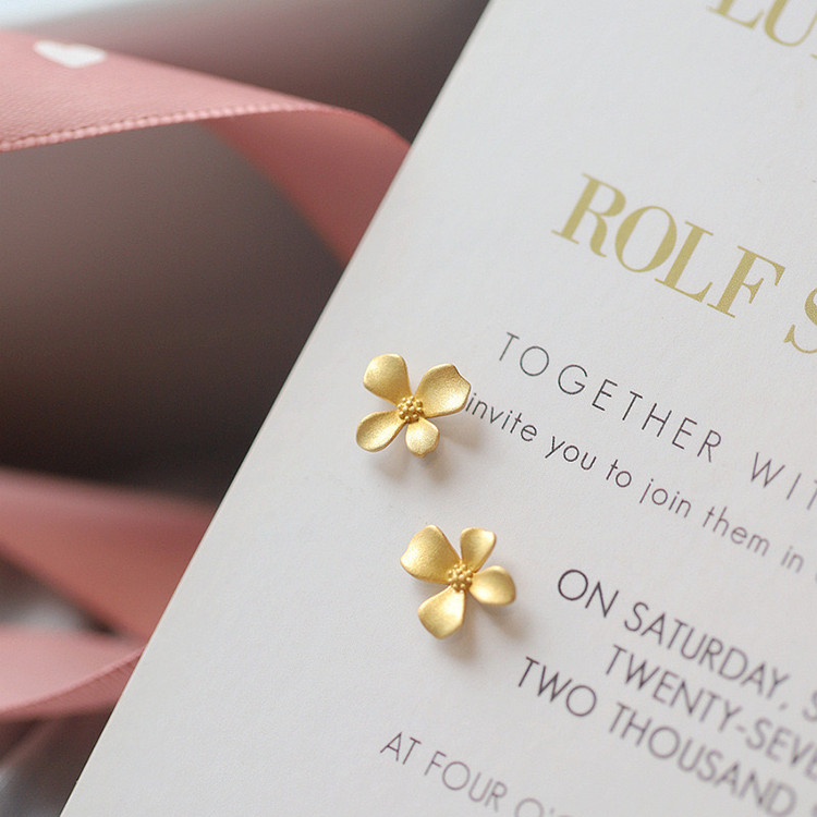 0204. گوشواره نقره مدل گل چهار پر طلایی