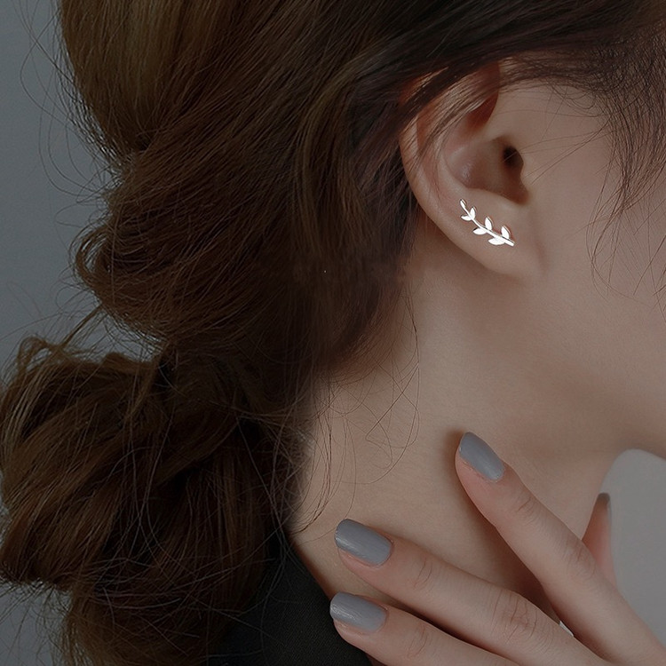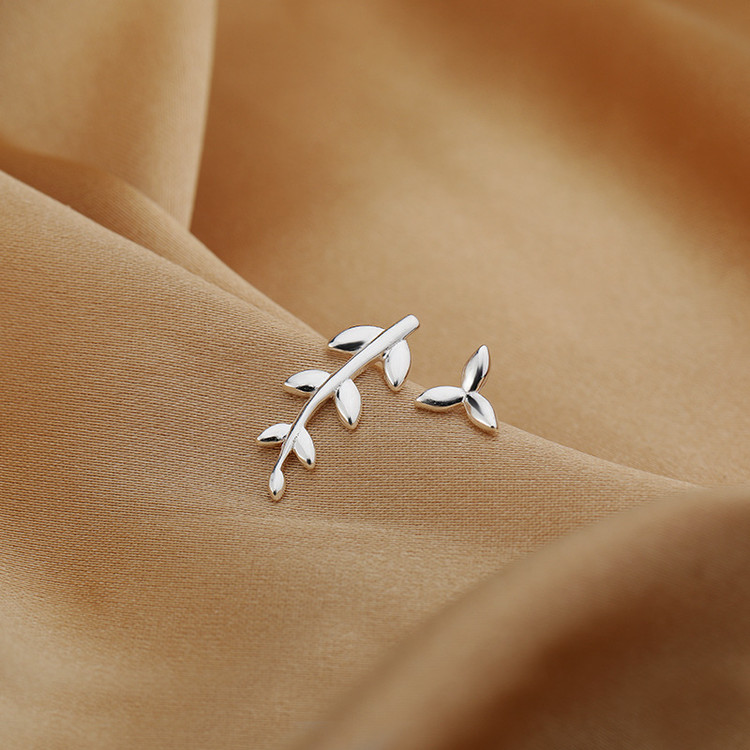 0305. گوشواره نقره مدل برگ زیتون نامتقارن