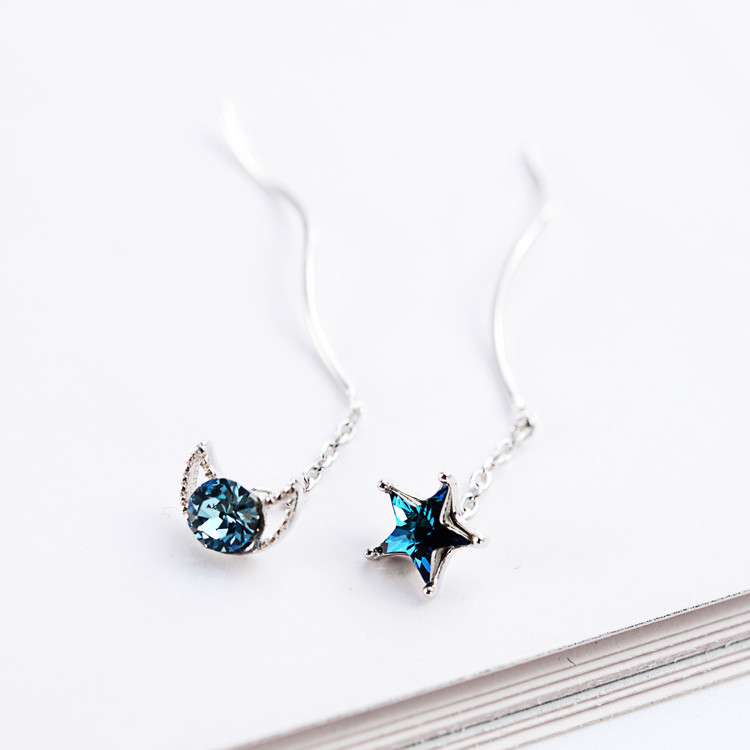 0295. گوشواره ماه و ستاره بخیه نگین آبی