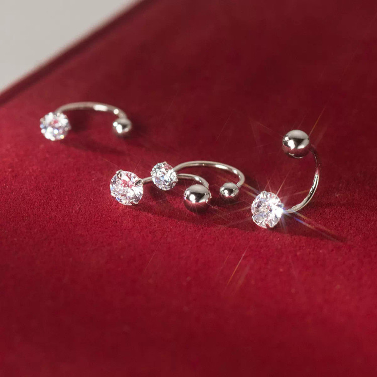 0156. پیرسینگ نقره عصایی با آبکاری طلای سفید (جفتی)