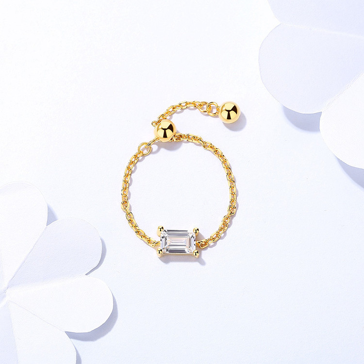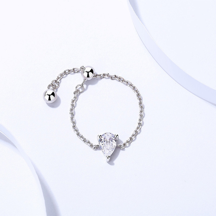 0002. انگشتر نقره مدل تک نگین با زنجیر قابل تنظیم (بیلبیلک دار)