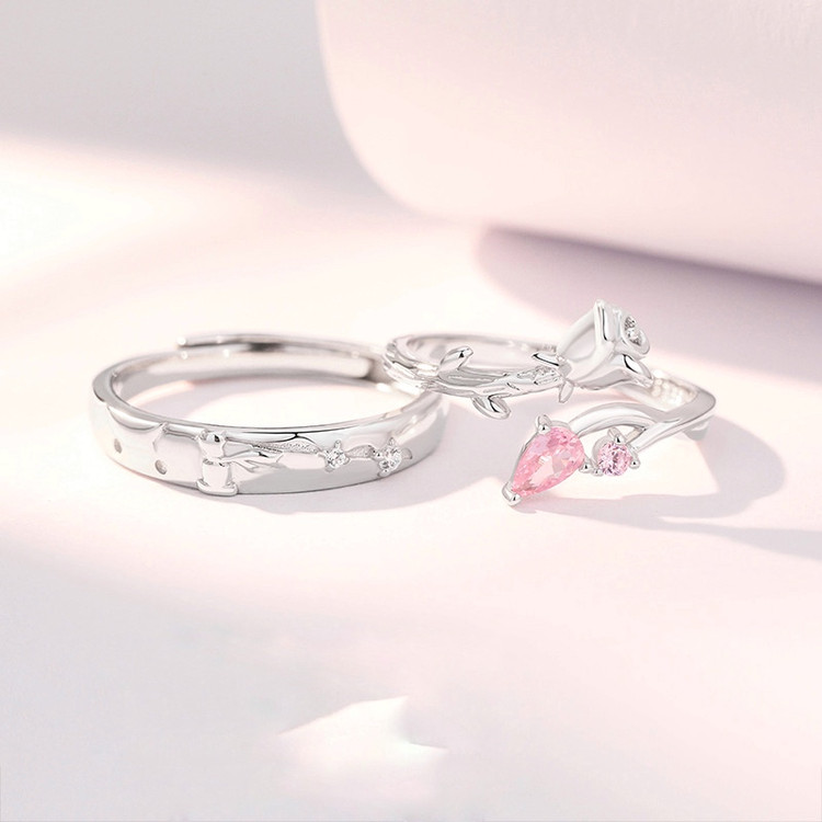 0029. انگشتر نقره ست گل رز نگین صورتی زنانه و شازده کوچولو مردانه