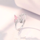 انگشتر گل رز و نگین صورتی