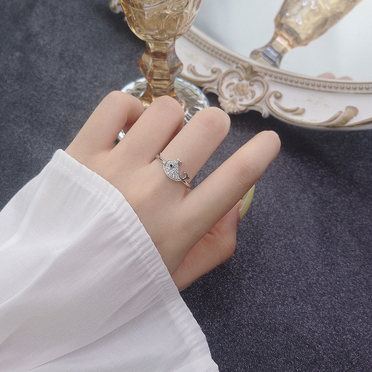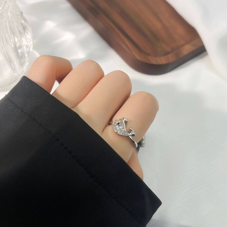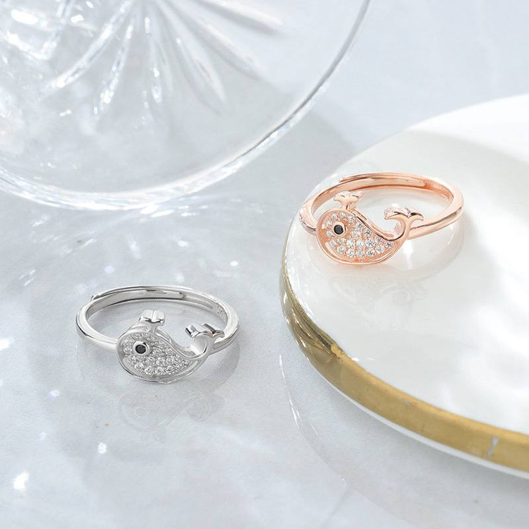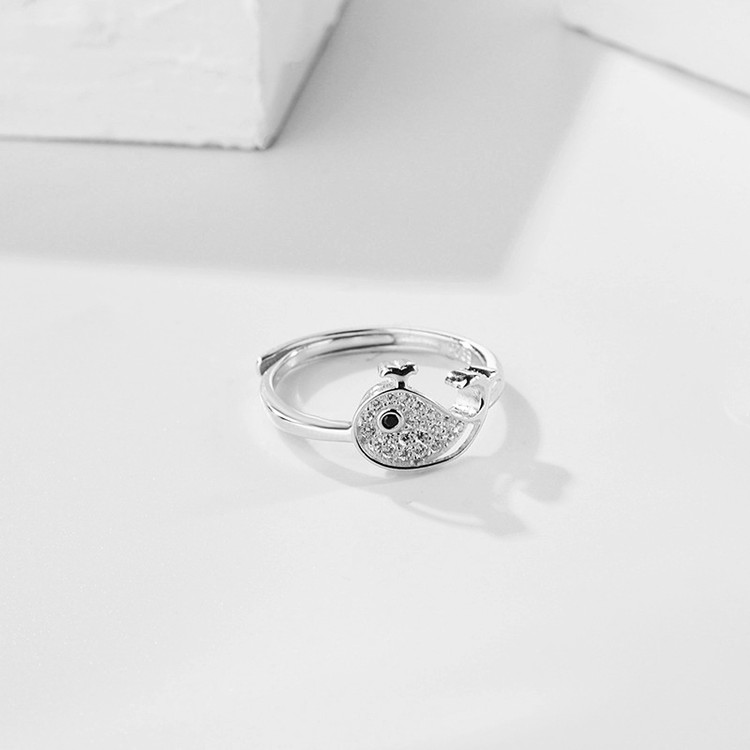 0003. انگشتر نقره مدل نهنگ نگین دار (رنگ نقره ای)