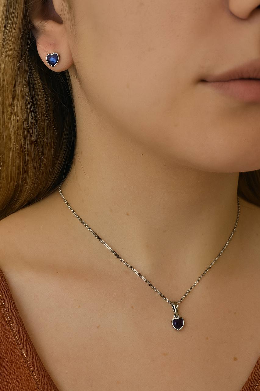 ۰۰۲۹. نیم ست (یا بخشی از نیم ست بنا به انتخاب) نقره مدل قلب مینی (پلاک + گوشواره میخی)